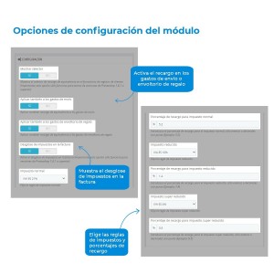 From this screen you can configure the percentages of the surcharge according to the type of VAT applied to the product, as well as other parameters such as: