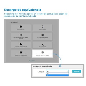The equivalence surcharge is associated with each customer and not with their addresses, so if a customer has the option to charge the equivalence surcharge enabled, it will be charged in all their addresses. The client will be able to manage whether or not to enable the surcharge from their client area.